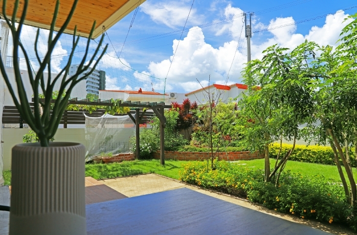 そのため、庭は日々の息抜きスペースとなり、家族が集まったり読書を楽しんだりする場にもすることができるだけでなく、日陰が直射日光から家具や床材を守り、色あせや劣化の防止につながります。