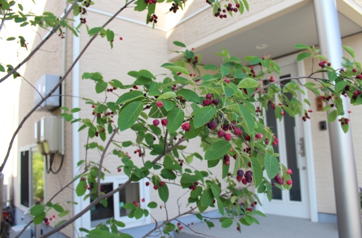 ジューンベリーは春に美しい白い花を咲かせ、6月になると赤い実を付けます。季節の移り変わりを楽しむことができるため、庭に彩りを加えたい方にはおすすめです。
