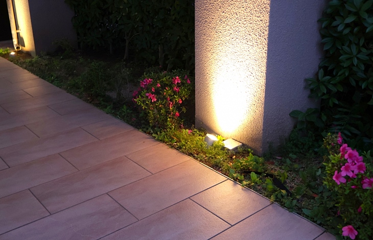 アプローチライト、アップライト、フットライトなど、様々な種類の照明を効果的に配置することで、昼間とは異なる幻想的な空間を創り出すことができます。