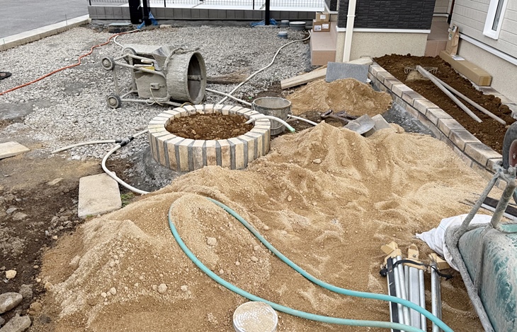 地盤改良や造成工事は、普段は見えない部分の作業ですが、その後のエクステリア全体の安定性を決める、非常に重要な工程です。