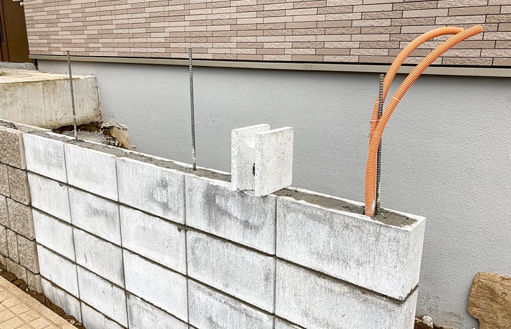 ブロックは一段ずつ積んで、モルタルが固まるのを待つ必要があるため、数メートル程度の一般的なブロック塀でも1週間から2週間程度かかることもあります。