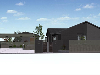 | お客様のご要望 | 広い敷地がありましたが、駐車場・門扉のスペースの使い方やデザインなど、どうすればよいか分からずデザインしてほしい、とのご要望でした。 |