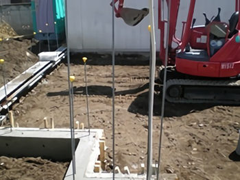 続いて骨組みを作り、コンクリートを流し込みます。