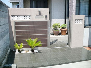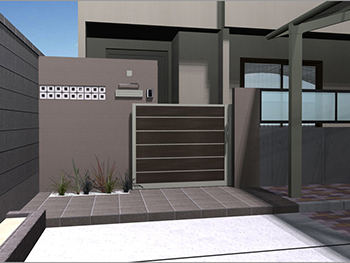 門扉の位置を奥にずらし、玄関とカーポートを遮る塀をなくすご提案をしました。 また、新しい門扉のデザインにもこだわり、何度もお打ち合わせを重ねました。 |