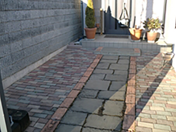 可愛らしいアプローチですが、年数の経過で足元がデコボコで歩きにくい状態でした。
