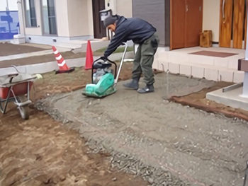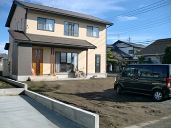 土がむき出しになっていた駐車場も、コンクリートでしっかりと土台を作りました。水たまりや泥汚れのお悩みも解決です。
