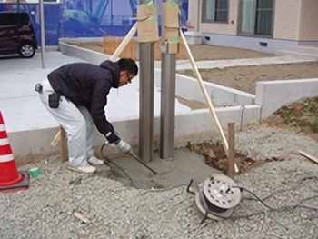 まずはコンクリートを打ち付け、頑丈な土台を作ります。