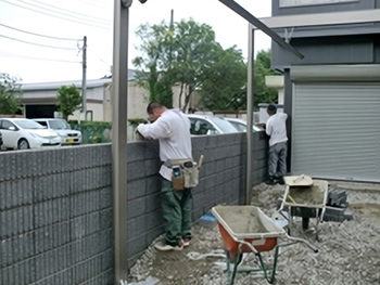 | お客様のご要望 | ガレージの前には雨を遮るものが何もなく、雨の日は車へ乗るまでに傘が必要でとても不便で困っていました。 また、敷地のまわりに門や塀がなかったため、合わせての新設をしたい、とのご要望でした。 |
