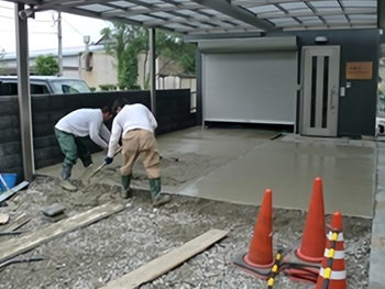 続いてコンクリートを打ち付け、頑丈な土台を作ります。