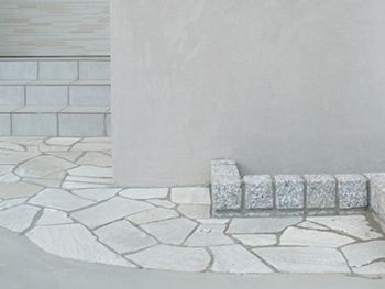 門袖のまわりには、形に合わせて職人が乱形石を敷き詰めていきます。