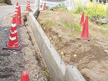 基礎も支柱部分にしかなく、路肩に砂や砂利がでてしまっている状態でした。