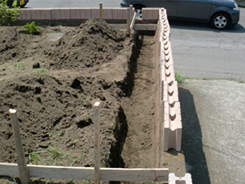 ブロックの上にはフェンスを取り付けるための柱を設置します。